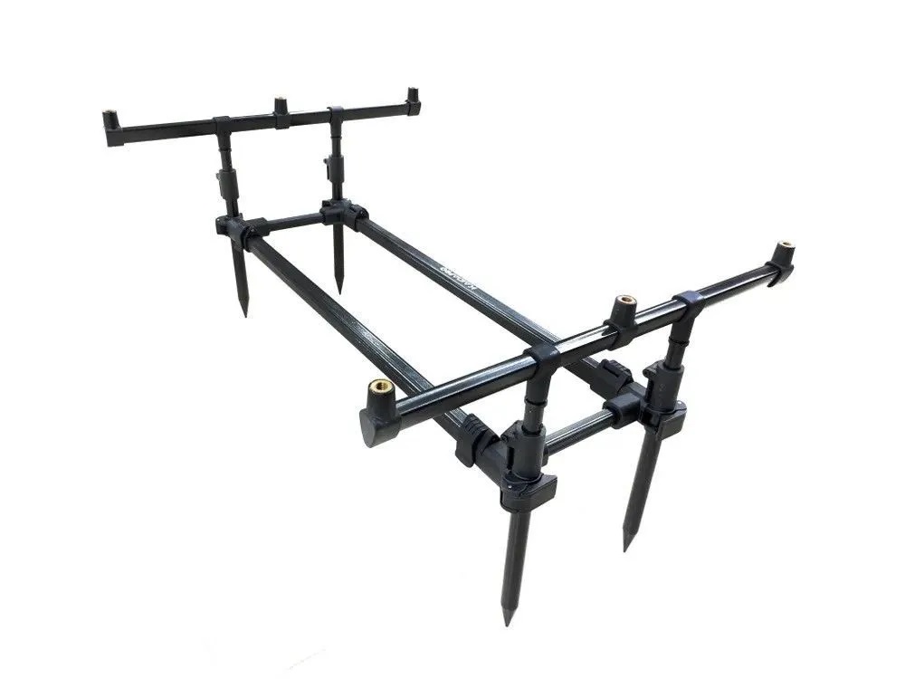 Подставка rod pod из алюминиевого сплава, с возможностью установки до 3-х удилищ одновременно. Конструкцией предусмотрена регулировка по длине, наклону и высоте, возможность установки электронных сигнализаторов. В комплекте прилагается чехол-сумка.