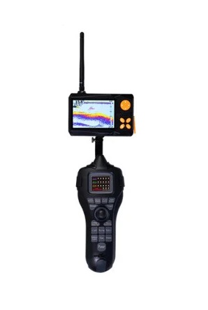 Оснащен вольтметром. Минимальное рабочее напряжение — 14V. При снижении заряда батарей до уровня менее 500 метров хода, передние фары начинают мигать, предупреждая вас. При снижении скорости время работы кораблика увеличивается. Пульт ДУ: Управление одной рукой, что позволяет другой рукой работать со снастью и прикормкой.