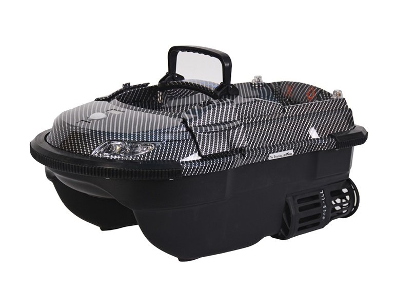 Кораблик выполнен в форме катамарана, что обеспечивает максимальную устойчивость на волнах и плавность хода. Корпус из углеродного волокна (карбона) обеспечивает исключительную прочность и легкость, что положительно сказывается на скорости, маневренности и времени работы от аккумулятора.