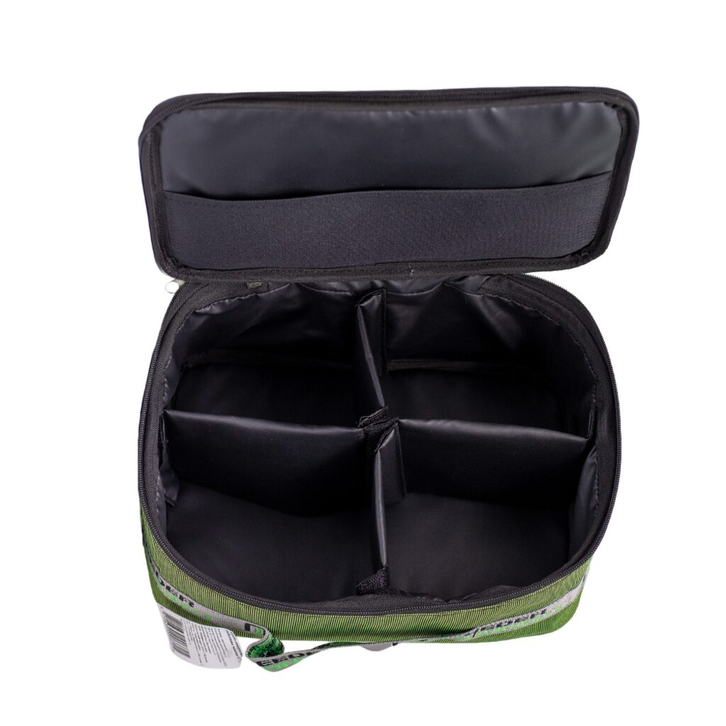 Внутри предусмотрены мягкие разделители для аккуратного размещения катушки, лески, кормушек, поводков и других аксессуаров.