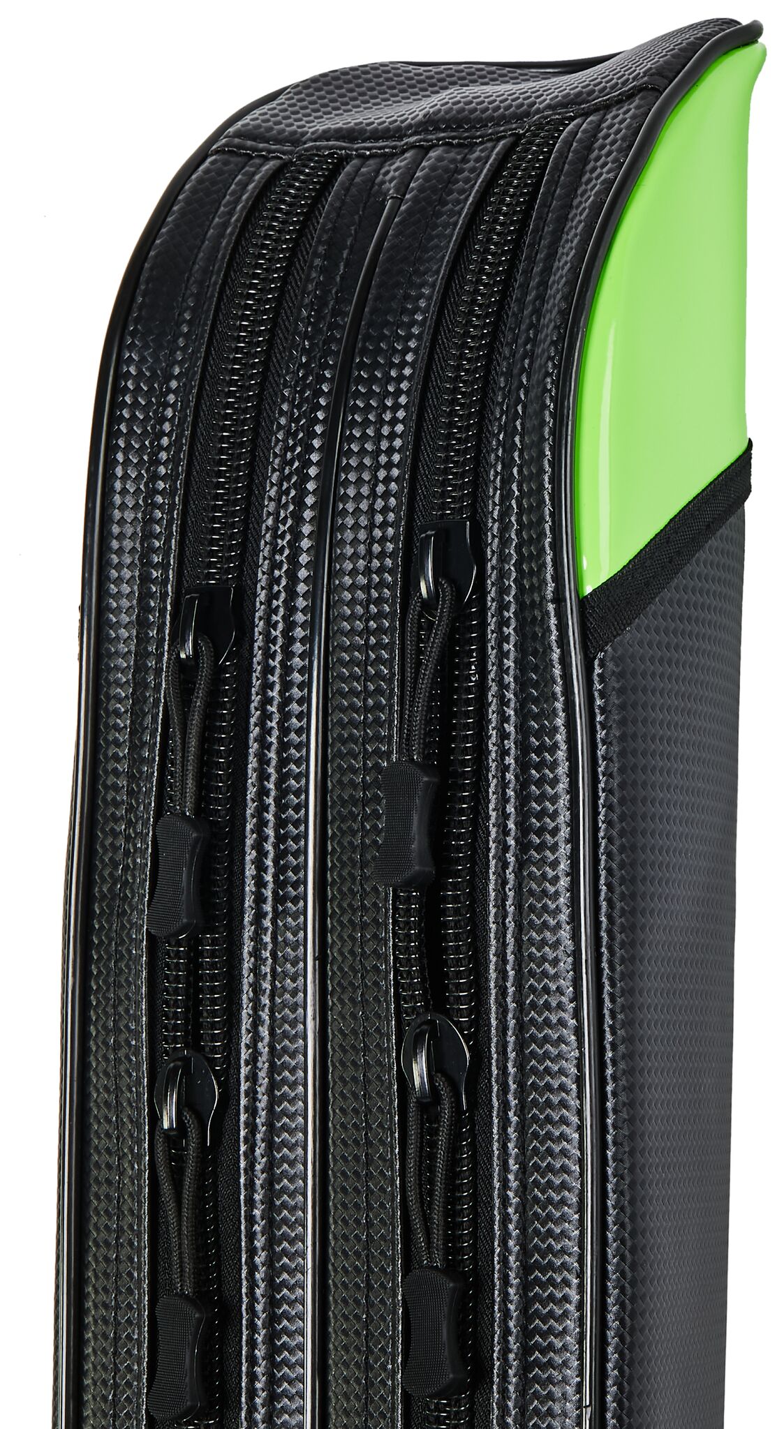 Чехол для хранения и перевозки удилищ с двойной застежкой-молнией. Вмещает два удилища, оснащенных катушкой. На чехле имеется дополнительное внешнее отделение для стоек и аксессуаров, также оснащённое застежкой-молнией. Чехол оборудован регулируемым наплечным ремнем, а также ручкой для переноски. Снизу чехол усилен пластиковым стаканом, поэтому его без проблем можно ставить на землю как при извлечении из него удилищ, так и при помещении их внутрь. Легко моется.