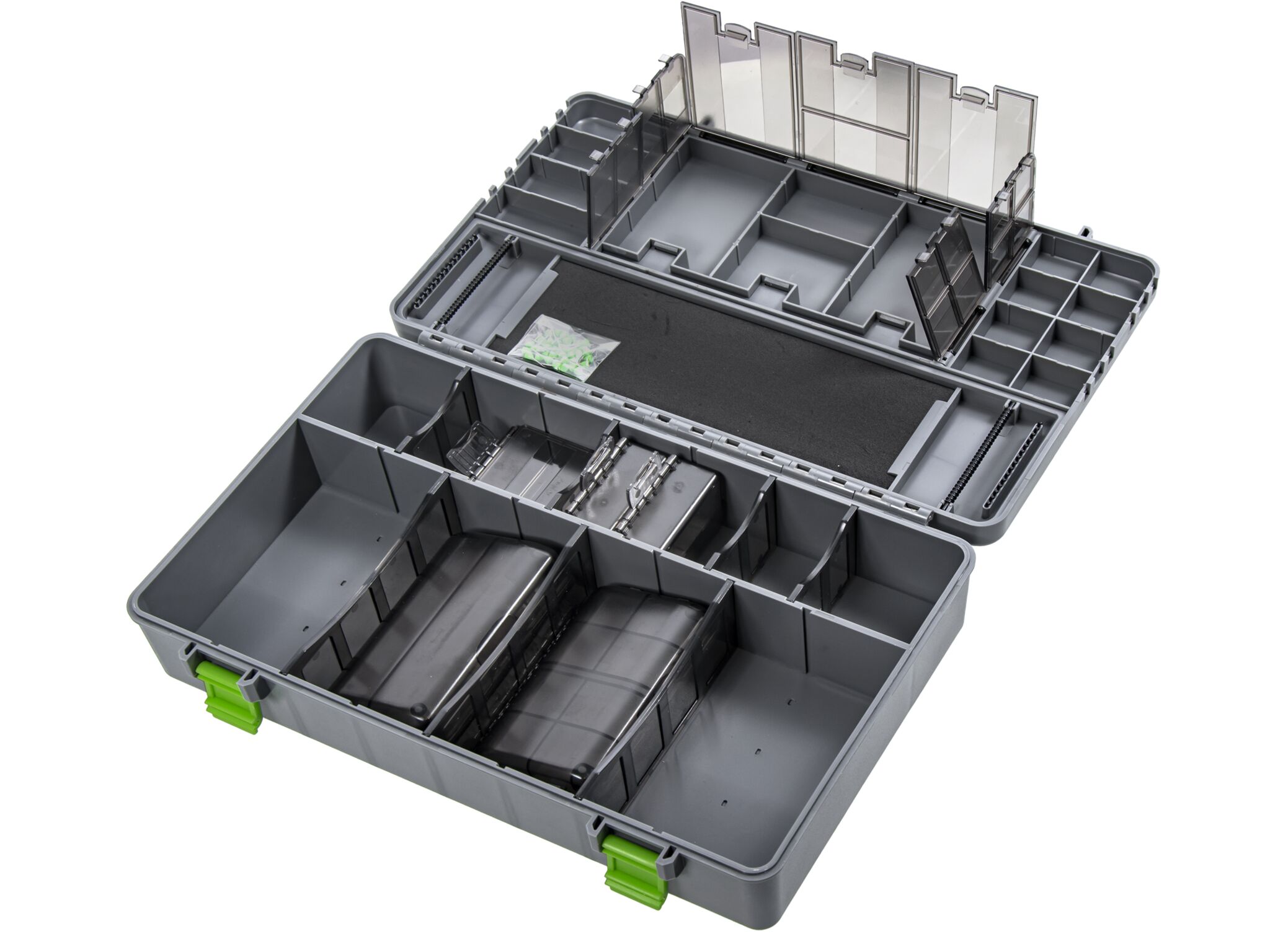 Коробка для аксессуаров (Текл Бокс) для фидерной и карповой рыбалки. Благодаря большой вместительности позволяет собрать всё необходимое для изготовления монтажей и оснасток в одной коробке. Коробка изготовлена из прочного пластика, который прослужит вам не один год. Надежные замки на коробке и внутренних отсеках исключают варианты самопроизвольного открытия. На крышке также есть линейка, позволяющая точно измерить длину оснастки. Интегрированная в коробку поводочница позволят хранить внутри большое количество готовых карповых поводков.
